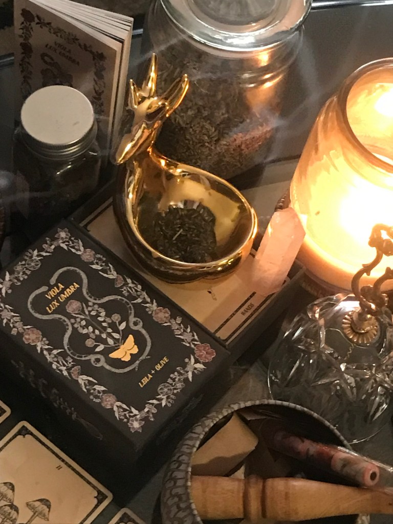 In terms of cottage witchery I’ve been eyeing up the kitchen and making some overdue changes, including starting to set up a tea library on the counter – more on that project soon, probably. I’ve been seeking more calm and more clarity lately, so I’m drinking a lot of this lavender, chamomile, and rosemary combo. Sometimes mixed with jasmine green tea if I want a gentle energy boost.